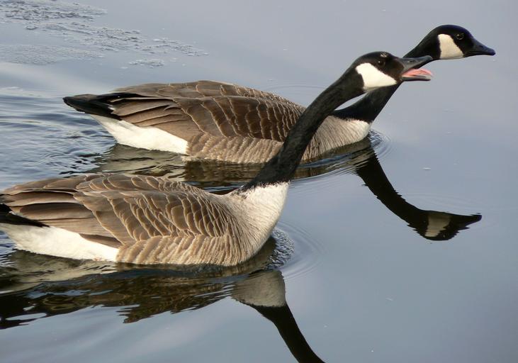 Keywords: canadian geese pair two mating ritual swimming birds waterfowl wildlife