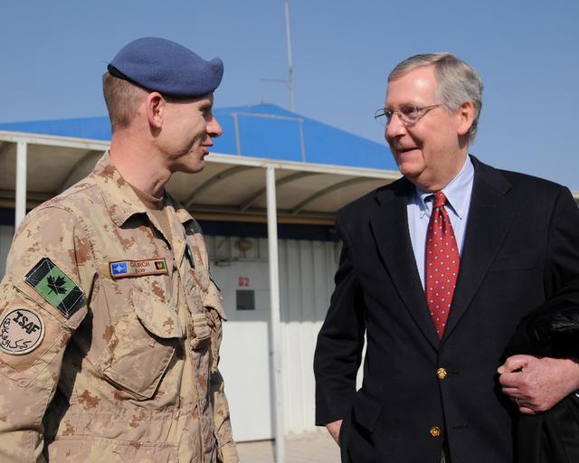 Keywords: Canadian Maj. William M. Church and U.S. Sen. Mitch McConnell talk during a tour (4278140647).jpg 100109-N-9594C-057 “ KABUL “ Canadian Maj William M Church left NATO Training Mission-Afghanistan NTM-A and U S Sen Mitch McConnell talk during a tour of the Central Training Facility CTC Kabul on January 9 2010 Sen McConnell was joined by Senators Lisa Murkowski Roger F Wicker and Mike Crapo and Rep Michael Castle for a visit to CTC and other facilities in the area The Congressional delegation received briefings from CTC NATO Training Mission-Afghanistan NTM-A and International Security Assistance Force senior leadership and met with Afghan National Police officers while in the Kabul area The mission of NTM-A is to train the Afghan National Security Forces and enhance the Government of the Islamic Republic of Afghanistan ™s ability to achieve a stable and secure country U S Navy photo by Chief Mass Communication Specialist F Julian Carroll http //www flickr com/photos/ntm-a_cstc-a/4278140647/ Canadian Maj William M Church and U S Sen Mitch McConnell talk during a tour Uploaded by russavia 2010-01-09 13 48 http //www flickr com/people/44825691 N08 NATO Training Mission-Afghanistan MCC SCW Francis J Carroll U S Navy photo PD-USGov-Military-Navy File Upload Bot Magnus Manske 2013-07-13 Kabul in the War in Afghanistan 2001-present Mitch McConnell North Atlantic Treaty Organization Files from NATO Training Mission-Afghanistan Flickr stream Afghanistan photos from Flickr check needed |