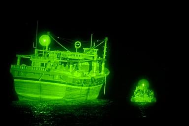 Keywords: Canadian Warship Aids Vessel Drifing in Arabian Sea DVIDS75465.jpg en During the evening of Jan 24 2008 the patrol frigate Her Majesty's Canadian Ship HMCS Charlottetown picked up a message on VHF channel 16 the distress frequency and immediately responded On reaching the position stated in the message Charlottetown found the fishing dhow Al Rahman adrift with a Pakistani crew of 18 in the northern Arabian Sea off the coast of Pakistan HMCS Charlottetown is deployed for six months in the Persian Gulf-Arabian Sea region on Operation ALTAIR Canada's maritime contribution to the U S -led campaign against terrorism known as Operation Enduring Freedom The frigate was conducting a maritime security patrol when the distress message was received An approach party from Charlottetown went to the dhow in a rigid-hulled inflatable boat with an Arabic interpreter The dhow's captain told the interpreter that he had just run out of gas He would have had enough fuel to return to his home port if he had not shared his supply with another dhow he found in distress a few days before In compliance with the Safety Of Life At Sea Convention Charlottetown topped up the dhow's tanks to ensure it would make port safely As members of the maritime community Canada's sailors are always ready to provide life-saving assistance to fellow mariners on the high seas Photo/Cpl Robert LeBlanc Formation Imaging Services Halifax NS <br>Unit National Defence Canada 2008-01-24 Canadian Forces Cpl Robert Leblanc https //www dvidshub net/image/75465/canadian-warship-aids-vessel-drifing-arabian-sea 75465 2011-08-17 03 31 HMCS CHARLOTTETOWN AT SEA PD-USGov Operation Enduring Freedom HMCS Charlottetown FFH 339 Images from DoD uploaded by Fæ |