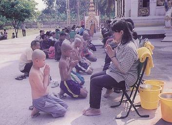 | Keywords: Candidate for the Buddhist priesthood 03.jpg Photo by User Tevaprapas 2001 candidate for the Buddhist priesthood is performing a ceremony to apologize the penalty Thailand Uttaradit 2001 Own work วัดคุ้งตะ ภา อำ ภอ มือง จังหวัดอุตรดิตถ์ candidate for the Buddhist priesthood is performing a ceremony to apologize the penalty Uttaradit Thailand own 2001 Tevaprapas Makklay ทวประภาส มากคล้าย Ordination at Wat Khung Taphao Apologizing | ||||