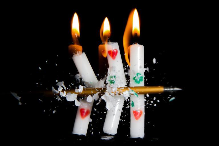 Keywords: candle light flame fire burn arrow crossbow shoot through meeting destroy