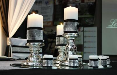 Keywords: candles fire wax tablecloth knot light silver candlesticks silver dining table the white ribbon black the veil