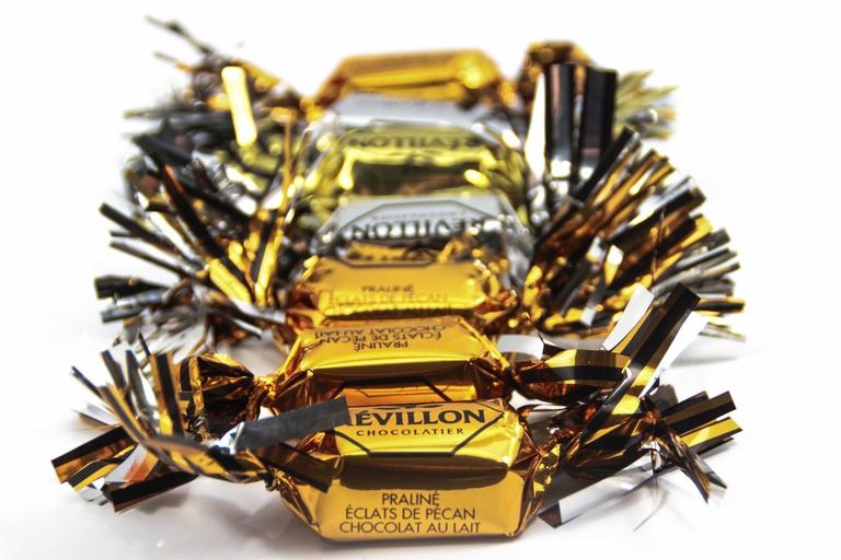 Keywords: candy chocolate eat food dark chocolate confectionery chocalate sweets white white background color orange yellow silver color free image