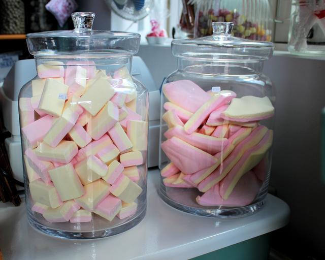 Keywords: candy sweet shop glass jars pink yellow sweets candies