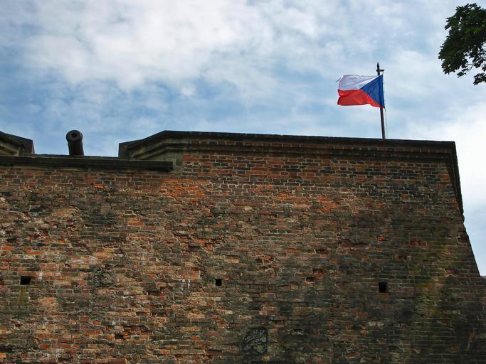 Keywords: cannon fortress castle castle wall bricks tourist attraction middle ages flag banner czech republic brno