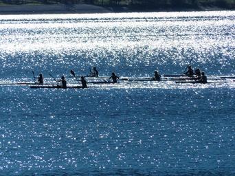Keywords: canoeists canoe tour canoes canoe trip canoe course water sports lake water sparkle shine back light