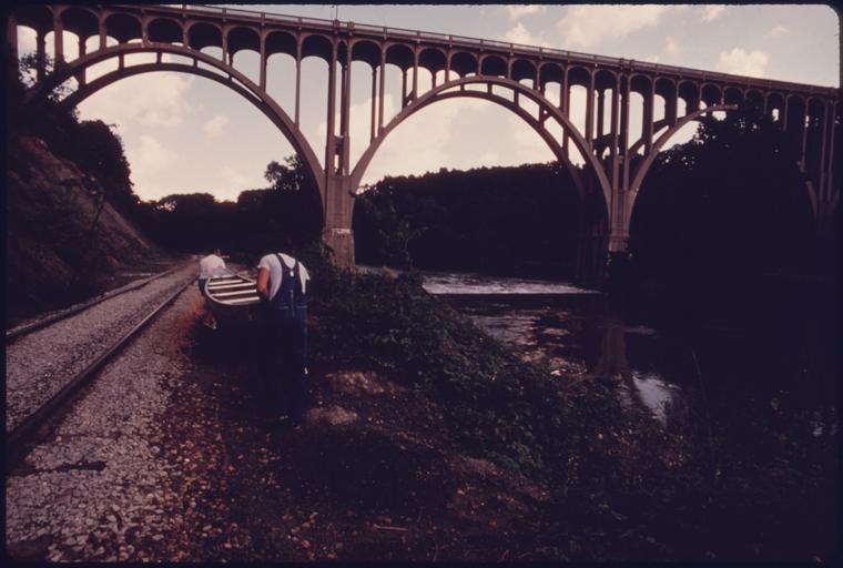 | Keywords: CANOEISTS ON THEIR WAY TO LAUNCH THEIR BOAT BELOW THE SPILLWAY AT THE BASE OF OHIO HIGHWAY 82 BRIDGE NEAR CLEVELAND.... - NARA - 557970.jpg Scope and content General notes 557970 Local identifier 412-DA-15520 Environmental Protection Agency 12/02/1970 - NARA-Author Aleksandrowicz Frank J Frank John 1921- Photographer 8452210 <br /> Cleveland Cuyahoga county Ohio United States North and Central America inhabited place 4201382 41 483 -81 683 <br /> Still Picture Records Section Special Media Archives Services Division NWCS-S National Archives at College Park 8601 Adelphi Road College Park MD 20740-6001 09/1975 Record group Record Group 412 Records of the Environmental Protection Agency 1944 - 2006 Record group ARC 708 DOCUMERICA The Environmental Protection Agency's Program to Photographically Document Subjects of Environmental Concern compiled 1972 - 1977 Series ARC 542493 File unit File unit ARC Variant control numbers Agency-Assigned Identifier 259/40/015520<br /> NAIL Control Number NWDNS-412-DA-15520 Other versions <gallery> File CANOEISTS_ON_THEIR_WAY_TO_LAUNCH_THEIR_BOAT_BELOW_THE_SPILLWAY_AT_THE_BASE_OF_OHIO_HIGHWAY_82_BRIDGE_NEAR_CLEVELAND _-_NARA_-_557970 tif tif File CANOEISTS_ON_THEIR_WAY_TO_LAUNCH_THEIR_BOAT_BELOW_THE_SPILLWAY_AT_THE_BASE_OF_OHIO_HIGHWAY_82_BRIDGE_NEAR_CLEVELAND _-_NARA_-_557970 jpg jpg </gallery> NARA-cooperation PD-USGov Cuyahoga River Canoeing in the United States 1975 in Ohio Brecksville-Northfield High Level Bridge Frank John Aleksandrowicz Cuyahoga Valley Scenic Railroad |