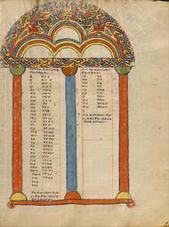 | Keywords: Canon Table Page - Google Art Project (6890556).jpg None 430703 Unknown /collection/the-j-paul-getty-museum/artwork/canon-table-page-unknown/6890556/ Unknown illuminator /collection/the-j-paul-getty-museum/ The J Paul Getty Museum 343005 http //www getty edu/museum 3/13/2012 12 21 36 AM /collection/the-j-paul-getty-museum/artwork/canon-table-page-unknown/6890556/ 1504 about 1504 - 1505 Tempera on parchment 345 6890556 True 1505 3/25/2012 3 05 17 PM lido getty edu-gm-obj313542 http //www getty edu/art/gettyguide/artObjectDetails artobj 313542 http //www getty edu/legal/copyright html Folio 1500 1510 Ethiopia Creation w265 x h345 cm about 1504 - 1505 False 0 740234375 Part canon-table-page-unknown Canon Table Page c 265 Tempera on parchment http //www getty edu/legal/copyright html special url_id LAFKYe88ORV8lg PD-old-100 MS 102 Getty museum - Ethiopian Gospel Book Canon tables Google Art Project works by unknown artist |
