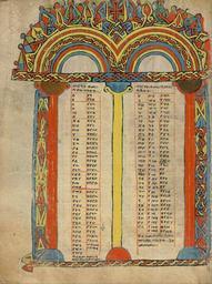 Keywords: Canon Table Page - Google Art Project (6891562).jpg None 430703 Unknown /collection/the-j-paul-getty-museum/artwork/canon-table-page-unknown/6891562/ Unknown illuminator /collection/the-j-paul-getty-museum/ The J Paul Getty Museum 343005 http //www getty edu/museum 3/13/2012 12 21 39 AM /collection/the-j-paul-getty-museum/artwork/canon-table-page-unknown/6891562/ 1504 about 1504 - 1505 Tempera on parchment 345 6891562 True 1505 3/25/2012 8 47 01 PM lido getty edu-gm-obj313543 http //www getty edu/art/gettyguide/artObjectDetails artobj 313543 http //www getty edu/legal/copyright html Folio 1500 1510 Ethiopia Creation w265 x h345 cm about 1504 - 1505 False 0 74609375 Part canon-table-page-unknown Canon Table Page c 265 Tempera on parchment http //www getty edu/legal/copyright html special url_id GAH3suTjjd_9BA PD-old-100 MS 102 Getty museum - Ethiopian Gospel Book Canon tables Google Art Project works by unknown artist