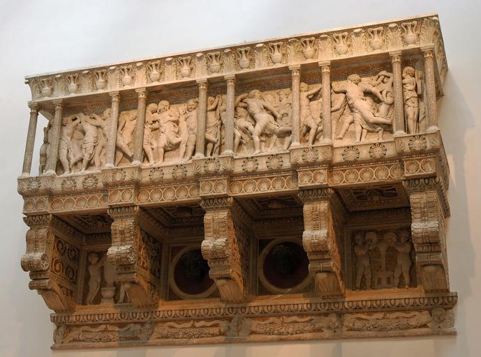 | Keywords: Cantoria Donatello OPA Florence.jpg Organ balcony best known as cantoria singer's gallery from the Duomo in Florence Italy Dismantled and partly destroyed in 1688; the upper frieze was remade by Gaetano Baccani in 1841 Marble Museo dell'Opera del Duomo Balcon pour orgue plus connu sous le nom de cantoria tribune des chantres provenant du Dôme de Florence Italie Démantelé et partiellement détruit en 1688 ; la frise supérieure a été refaite par Gaetano Baccani en 1841 Marbre musée de l'Å’uvre du Dôme Jastrow own picture ca 1433 Donatello Italian 1386 “1466 Public Domain cantoria by Donatello |