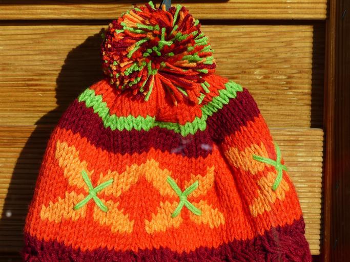Keywords: cap colorful orange cheerful warm knitted knit beanie cap wool bobble hat pattern retired