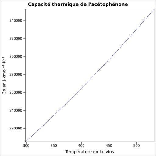 | Keywords: Capacité thermique acétophénone.svg fr Capacité thermique liquide calculée d'après <br/> Robert H Perry et Donald W Green Perry's Chemical Engineers' Handbook McGraw-Hill USA 1997 7e éd 2400 p ISBN 0-07-049841-5 p 2-170 own Epop 2010-06-28 Created with Gnumeric Heat capacity |
