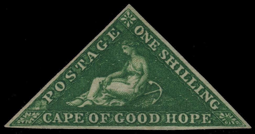 | Keywords: Cape1shilling1858.jpg Cape of Good Hope triangular postage stamp bright yellow-green 1 shilling 1858 SG N°8 Т еугольная почтовая ма ка ыса Доб ой адежды 1 шиллинг 1858 год Private collection of Nickpo Design Charles Bell engraved W Humphrys 1858-02-18 scan 2008-11-04 PD-UKGov PD-old-100 1858 stamps Triangular stamps Stamps of the Cape of Good Hope Females on stamps 1858 in South Africa Engraved stamps Green stamps | ||||