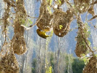Keywords: Cape Weaverbird.JPG en Cape Weaver Ploceus capensis and Nests Langebaan Cape Province South Africa own Andrew massyn 2008-04 Ploceus capensis nests Langebaan Ploceidae of South Africa