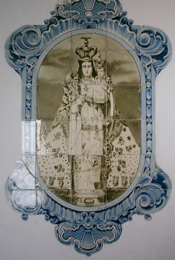 Keywords: Capela de Nª Srª da Saúde - Azulejo.JPG 2005-09-11 own assumed Juntas Azulejos in Sacavém Azulejos of Madonna and Child Brown and white azulejos