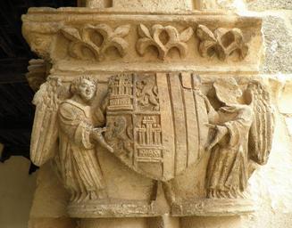 Keywords: CapitelE10.JPG en 10th capital in easthern corridor of Santa Maria la Real de Nieva church Segovia province Spain Coat of arms of Castille and Aragon with two angels homage to King John II and his wife Mary of Aragon es 10º capitel de la galería oriental del claustro de la iglesia de Santa María la Real de Nieva en la provincia de Segovia España Escudo de armas de Castilla y Aragón con dos ángeles en homenaje al rey Juan II y su esposa la reina María de Aragón own Osado 2010 Capitals of the Cloister of Santa María la Real de Nieva Maria of Aragon Queen of Castile Coats of arms of queens of Castile |