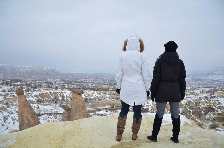 Keywords: cappadocia female couple friends red white winter nature snow frozen ice sky winter mood landscape