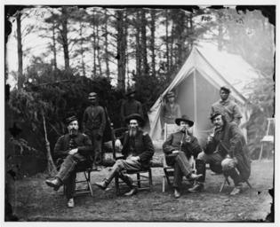 Keywords: Capt James M Robertson 1st Brigade Horse Artillery.jpg en View of Capt James M Robertson 1st Brigade Horse Artillery February 1864 Photograph is from the main eastern theater of the Civil War winter quarters at Brandy Station Virginia The print shows uniformed African-American in back of white officers Glass wet collodion negative http //memory loc gov/service/pnp/cwpb/04000/04044v jpg Author 1864-02 PD-old Culpeper County Virginia 1864 in Virginia James Madison Robertson |