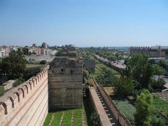 Keywords: Car bed 3.jpg The Theodosian Walls in Constantinople View to the south from Deuterou Belgrade gate 2006-10-30 own assumed CrniBombarder Walls of Constantinople
