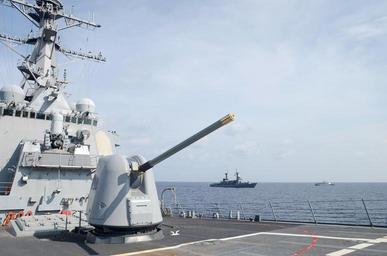Keywords: CARAT Philippines 2013 130629-N-YU572-455.jpg en From left the guided-missile destroyer USS Fitzgerald DDG 62 the Philippine Navy frigate Gregorio Del Pilar PF 15 and the Philippine Coast Guard vessel Edsa II SARV 002 are underway during Cooperation Afloat Readiness and Training Philippines 2013 CARAT is a series of bilateral military exercises between the U S Navy and the armed forces of Bangladesh Brunei Cambodia Indonesia Malaysia the Philippines Singapore Thailand and Timor-Leste U S Navy photo by Mass Communication Specialist 1st Class Jay C Pugh/Released 2013-06-29 Petty Officer 1st Class Jay Pugh https //www dvidshub net/image/964287 130629-N-YU572-455 2013-07-01 23 07 PHILIPPINE SEA PD-USGov-Military-Navy Cooperation Afloat Readiness and Training 2013 USS Fitzgerald DDG-62 Images from DoD uploaded by Fæ 5 /54 caliber Mark 45 gun |