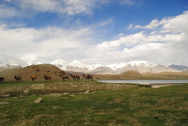 Keywords: caravan camels landscape lake travel nature sky outdoors