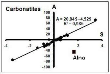 MAKE A MEME View Large Image CARBONATITES.JPG en Compensation diagramm in carbonatite calcites ru Компенсационная диаг амма  асп еделений па амет ов у авнений связывающих изотопные ...