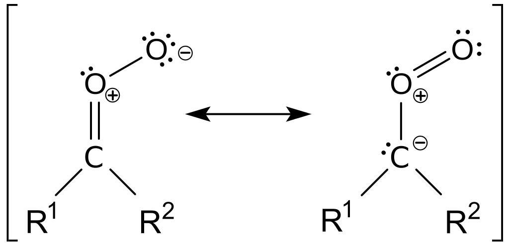 Keywords: Carbonyl oxide-resonance.svg en Resonance structure of carbonyl oxide Criegee zwitterion own Wickey-nl 2012-03-02 Cc-zero Carbonyl oxides
