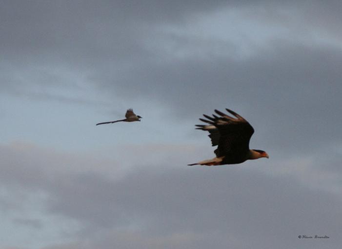 Keywords: Carcara.jpg A Fork-tailed Flycatcher Tyrannus savana harassing a far larger Southern Caracara Caracara plancus syn Polyborus plancus Own 11 07 Mauroguanandi open Caracara plancus in flight Tyrannus savana in flight