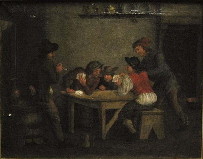 Keywords: Card Players by Johannes Hubertus Cuypers Cuypershuis 0346.jpg Artwork Creator Johannes Hubertus Cuypers Herberginterieur met vijf kaartspelers Naar een oude prent 1858 ucfirst oil on canvas cm 43 5 52 3 4 3 institution Cuypershuis place of discovery object history exhibition history credit line accession number 0346 place of creation Roermond museumcollecties roermond nl http //museumcollecties roermond nl/adlib/search/simple Home http //museumcollecties roermond nl/adlib/Details/collect/2027 Info http //museumcollecties roermond nl/adlib-wwwopacx/wwwopac ashx command getcontent server images value 0346 jpg Pic http //museumcollecties roermond nl/adlib/Details/collect/2027 Collectie Online Gemeente Roermond i18n/as Kaartspelers 1858 PD-Art-100 Johannes Hubertus Cuypers 1858 Paintings in the Cuypershuis Cuypers Johannes Hubertus Uploaded with UploadWizard |