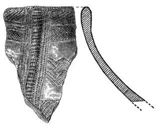 | Keywords: Cardial fragmento.png Cerámica cardial neolítica-Fragmento del cuello de una cerámica decorada con impresiones cardiales procedente de Cueva Grande de Collbató Cataluña Cardium pottery of Neolithic - Fragment of pottery neck with cardium decoration fron the Cave named Cueva Grande de Collbató Catalonia Josep Corominas 1925 «Prehistoria de Montserrat» Barcelona 1925 Josep Corominas 1925 PD-old Cardial pottery Prehistoric Iberia | ||||