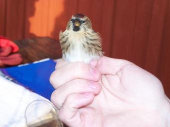 | Keywords: Carduelis flammea ringed by Landsort Bird Observatory-3.JPG en A Common Redpoll Carduelis flammea or probably a Lesser Redpoll Carduelis cabaret ringed at Landsort Lighthouse on the south cape of the island Öja Landsort south of Nynäshamn in Södermanland in Stockholm County in Sweden Landsort Bird Observatory is responsible for the ringing sv En gråsiska Carduelis flammea antagligen av underarten brunsiska Carduelis flammea cabaret ringmärkt vid Landsorts fyr på Landsorts södra udde på ön Öja syd om Nynäshamn i Södermanland i Stockholms län i Sverige Denna ringmärkning utförs av Landsorts fågelstation 2010-10-08 own Calandrella cc-zero Uploaded with UploadWizard Unidentified Acanthis Ringed birds Fringillidae in Sweden Bird migration Birds being ringed |