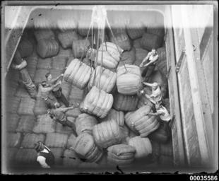 | Keywords: samuel j hood collection samueljhoodcollection barque magdalene vinnen magdalenevinnen harbour scenes harbourscenes merchant vessel merchantvessel sydney harbour sydneyharbour foreign vessel foreignvessel cargo woolloomooloo blackandwhite monochrome photo border black and white The four-masted steel barque, MAGDALENE VINNEN, was built in 1921 in Kiel, Germany for F A Vinnen and Company in Bremen. On 27 February 1933, under the command of Captain Lorenz Peters, MAGDALENE VINNEN sailed into Sydney Harbour. The masts were too tall to allow the vessel to pass under the Harbour Bridge to be berthed in Pyrmont, so it was moved to Number 2 wharf in Woolloomooloo. The barque was loaded with almost 16,000 bales of wool, the fourth largest shipment to have left Sydney, before it sailed the record-breaking 82-day voyage for Falmouth, England. The barque visited Australia again in 1935, with its cargo being wheat, lifted from Port Broughton in South Australia. The following year, the vessel was sold to Norddeutscher Lloyd, Bremen, renamed KOMMODORE JOHNSEN and used as a cargo carrier and sail-training ship. In 1945, the ship was awarded to the Soviet Union as war compensation and renamed SEDOV. When it was first built, it was the largest auxiliary barque in the world. To this day, it is still in operation and in 2011, it retained its ranking as the largest tall ship in the world. This photo is part of the Australian National Maritime Museum’s Samuel J. Hood Studio collection. Sam Hood (1872-1953) was a Sydney photographer with a passion for ships. His 60-year career spanned the romantic age of sail and two world wars. The photos in the collection were taken mainly in Sydney and Newcastle during the first half of the 20th century. The ANMM undertakes research and accepts public comments that enhance the information we hold about images in our collection. This record has been updated accordingly. Photographer: Samuel J. Hood Studio Collection Object no. 00035586 The four-masted steel barque, MAGDALENE VINNEN, was built in 1921 in Kiel, Germany for F A Vinnen and Company in Bremen. On 27 February 1933, under the command of Captain Lorenz Peters, MAGDALENE VINNEN sailed into Sydney Harbour. The masts were too tall to allow the vessel to pass under the Harbour Bridge to be berthed in Pyrmont, so it was moved to Number 2 wharf in Woolloomooloo. The barque was loaded with almost 16,000 bales of wool, the fourth largest shipment to have left Sydney, before it sailed the record-breaking 82-day voyage for Falmouth, England. The barque visited Australia again in 1935, with its cargo being wheat, lifted from Port Broughton in South Australia. The following year, the vessel was sold to Norddeutscher Lloyd, Bremen, renamed KOMMODORE JOHNSEN and used as a cargo carrier and sail-training ship. In 1945, the ship was awarded to the Soviet Union as war compensation and renamed SEDOV. When it was first built, it was the largest auxiliary barque in the world. To this day, it is still in operation and in 2011, it retained its ranking as the largest tall ship in the world. This photo is part of the Australian National Maritime Museum’s Samuel J. Hood Studio collection. Sam Hood (1872-1953) was a Sydney photographer with a passion for ships. His 60-year career spanned the romantic age of sail and two world wars. The photos in the collection were taken mainly in Sydney and Newcastle during the first half of the 20th century. The ANMM undertakes research and accepts public comments that enhance the information we hold about images in our collection. This record has been updated accordingly. Photographer: Samuel J. Hood Studio Collection Object no. 00035586 |