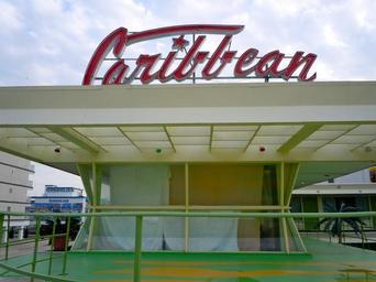 Keywords: Caribbean 1 NRHP NJ.jpg en Caribbean Motel on NRHP since August 24 2005 At 5600 Ocean Ave in Wildwood Crest south of Wildwood New Jersey in Cape May County Built 1958 in a distinctive modern Las Vegas Jetsons style aka Googie style or locally Doo-Wop Second story office photographer facing south Note the tilted glass bright colors huge neon sign and the overhang without a roof See also Chateau Bleu for another example of this style nearby 2011-04-23 own Smallbones cc-zero Uploaded with UploadWizard Caribbean Motel |