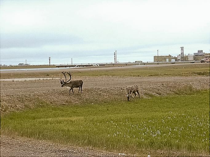 Keywords: Caribou at Prudhoe Bay.jpg en Caribou graze near a road in the Prudhoe Bay oilfield http //www jpo doi gov/Photo 20Gallery/index htm Joint Pipeline Office PD-USGov Mammals of Alaska Prudhoe Bay Alaska Trans-Alaska Pipeline System Rangifer tarandus in the United States |