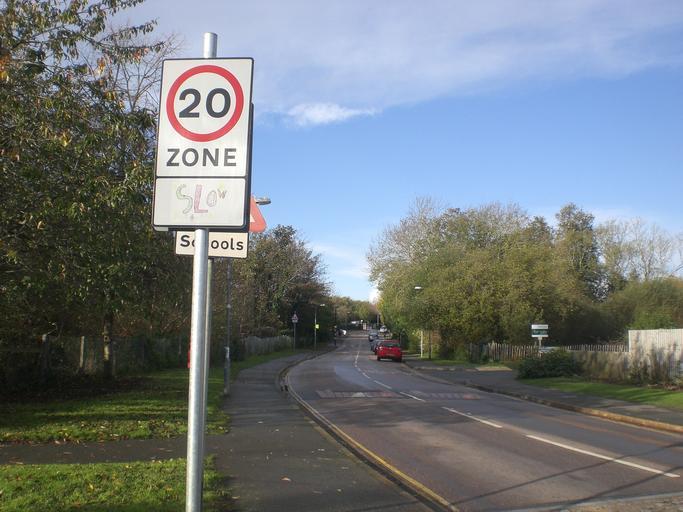 Keywords: Carisbrooke Wellington Road slow signs 3.JPG Carisbrooke on the Isle of Wight The bottom part of the sign shows a drawing by pupils at Carisbrooke Primary School to encourage motorists to slow down own Editor5807 2009-11-07 Carisbrooke Road signs on the Isle of Wight Images by Editor5807 20 number in red circle Zone 20 Speed limit zone road signs |