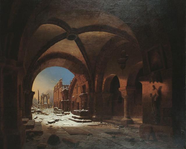 | Keywords: Carl Georg Adolph Hasenpflug (zugeschr.) - Das Kloster Walkenried bei Sonnenuntergang.jpg attributed to Das Kloster Walkenried bei Sonnenuntergang oil canvas cm 102 123 object history credit line accession number http //www bonhams com/auctions/11622/lot/142/ Bonhams PD-art-100 Carl Hasenpflug Kloster Walkenried Images from Bonhams Cloisters in art | ||||