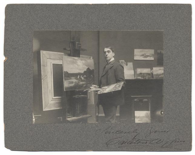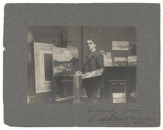 | Keywords: smithsonian institution smithsonianinstitution portrait carleton wiggins carletonwiggins painter b&w photography bwphotography signed photo signedphoto impressionist painter impressionistpainter cow black and white blackandwhite studio oil paints oilpaints posing portraits frames many paintings manypaintings carlton wiggins carltonwiggins 1880 artist easel man painting eisel paint brush paintbrush signature archives of american art archivesofamericanart black and white Description: Wiggins, painter, at his easel, pallette and brush in hand. Inscription lower right: "Sincerely Yours, Carleton Wiggins." Creator/Photographer: Unidentified photographer Medium: Black and white photographic print Dimensions: 12 cm x 17 cm Date: c. 1880 Collection: Macbeth Gallery Records, c. 1890-1964 Persistent URL: www.aaa.si.edu/collections/images/detail/carleton-wiggins... Repository: Archives of American Art Accession number: aaa_macbgall_4862 Description: Wiggins, painter, at his easel, pallette and brush in hand. Inscription lower right: "Sincerely Yours, Carleton Wiggins." Creator/Photographer: Unidentified photographer Medium: Black and white photographic print Dimensions: 12 cm x 17 cm Date: c. 1880 Collection: Macbeth Gallery Records, c. 1890-1964 Persistent URL: www.aaa.si.edu/collections/images/detail/carleton-wiggins... Repository: Archives of American Art Accession number: aaa_macbgall_4862 |