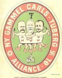 Keywords: Carlsberg-Tuborg i Klods-Hans 1903.jpg da Satire i Klods-Hans 1903 i anledning af samarbejdsaftalen mellem Gl og Ny Carlsberg og De forenede Bryggerier med Tuborg i spidsen Til højre DfB/Tuborgs direktør Benny Dessau i midten Carl Jacobsen fra Ny Carlsberg og til venstre S A von der Aa Kühle fra Gl Carlsberg Gl og Ny Carlsbergs logoer er med stjerne og svastika http //www 123hjemmeside dk/carlsberg-etiketter/5889275 Alfred Schmidt 1858-1938 1903 PD-old Caricatures of Denmark 1903 in Denmark Alfred Schmidt caricaturist Carlsberg Group Søren Anton van der Aa Kühle Carl Jacobsen Benny Dessau Tuborg |