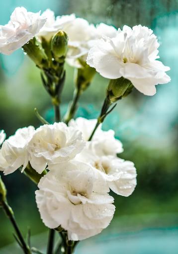 Keywords: carnation white flowers blossom color bloom floral nature fresh natural plant freshness romantic elegant elegance macro droplets