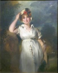 Keywords: Caroline, Princess of Wales, 1798 by Sir Thomas Lawrence.jpg Artwork Creator Thomas Lawrence Portrait of female 1798 Oil on canvas cm 127 102 without frame ; cm 170 146 with frame Institution VAM In Storage cite book Kenneth Garlick 1954 Sir Thomas Lawrence English master painters 31 London Routledge Paul 1209569 Reproduced in cite book Armstrong Sir Walter Lawrence 1913 object history ProvenanceEvent 1877 bequest South Kensington Museum now V A London Mrs White exhibition history credit line 1798 inscription verso accession number 121-1877 place of creation http //media vam ac uk/media/thira/collection_images/2007BN/2007BN5745 jpg V A <gallery>Caroline princess of Wales jpg larger but lower quality</gallery> PD-old-100 DEFAULTSORT 1798; Caroline of Brunswick Royal portrait paintings by Thomas Lawrence Female portrait paintings by Thomas Lawrence 18th-century portrait paintings in the Victoria and Albert Museum Caroline of Brunswick 1790s dresses 1798 oil on canvas paintings in the United Kingdom Portrait 1798 portrait paintings from Great Britain 18th-century oil portraits of standing women at three-quarter length Females with white dresses in art Portrait paintings of women with hair flowers Portrait paintings with natural background