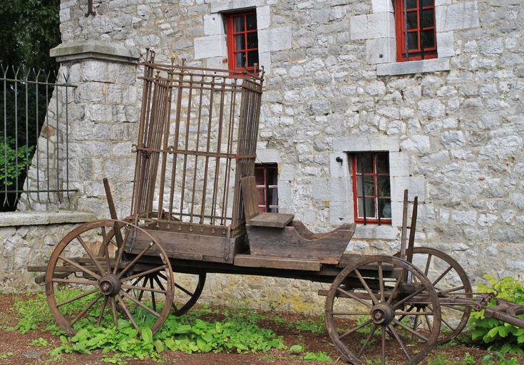 | Keywords: cart dare train car cage cage of fools coach middle ages building historically masonry architecture facade wall old stones stone wall metal cage prisoner cage inquisition prisoners window castle fortress knight's castle history wagon wheel wooden cart metal fence hangman mockery |