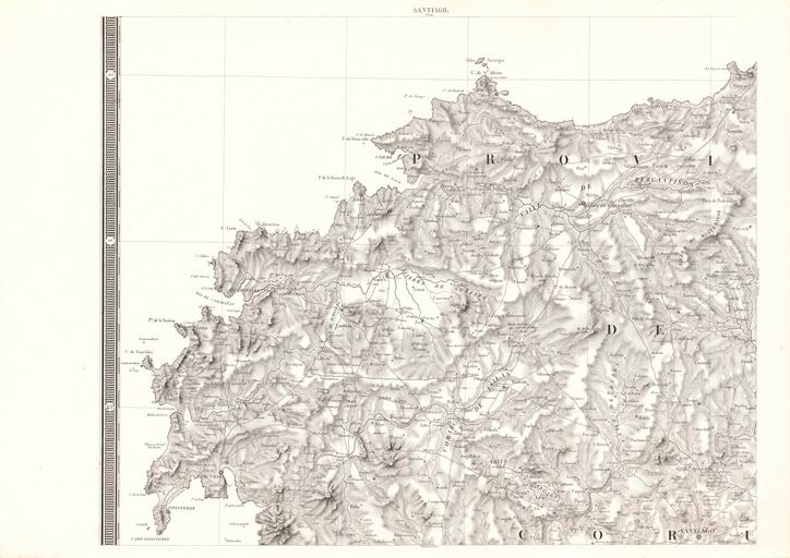 | Keywords: Carta geométrica de Galicia 04 Santiago.jpg es <center> CARTA GEOMETRICA<br /> <big>D E G A L I C I A</big><br /> Dividida en sus Provincias<br /> de Coruña Lugo Orense Pontevedra; y subdividida en Partidos y Ayuntamientos <br /> PRESENTADA<br /> <small>EN 1834</small><br /> A S M LA REINA GOBERNADORA<br /> <big>Doña Maria Cristina de Borbon</big><br /> por su Secretario de Estado y del despacho de lo Interior<br /> <small>LEVANTADA Y CONSTRUIDA</small><br /> <small>EN LA ESCALA</small><br /> <small>DEL CIENMILESIMO</small><br /> POR EL D<sup>R</sup> D DOMINGO FONTAN <br /> Director del Observatorio Astronomico de Madrid Diputado á Cortes <br /> Individuo de la Academia de la Historia y de la Sociedad de Geografia de Paris <br /> <small>Ex-profesor de Matematicas sublimes y de Mecanica industrial en la Ciudad de Santiago </small><br /> <big>Grabada bajo la dirección del Autor</big><br /> en 1845<br /> POR L BOUFFARD<br /> <small>No se grabó la división de los Partidos y Ayuntamientos</small><br /> <small>en razon de su interinidad </small><br /> </center> 1845 http //bibliotecadigital rah es/dgbrah/es/consulta/registro cmd id 15909 Real Academia de la Historia Domingo Fontán 1788-1866 other versions PD-old-70-1923 Carta geométrica de Galicia 1845 |