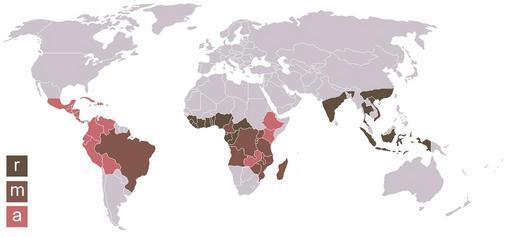 | Keywords: Carte Coffea robusta arabica 2.png  Distribución geográfica de los diferentes cultivos r robusta a arabica m robusta y arabica Map of production of coffee r culture Coffea robusta m culture Coffea robusta Coffea arabica a culture Coffea arabica 2005-03-25 own assumed Pixeltoo Coffee maps |