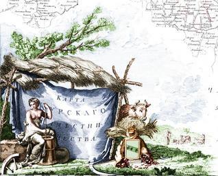 Keywords: Cartouche Kursk 1792.jpg Ка туш ка ты Ку ского наместничества лист 24 из «Российского атласа из со ока четы ех ка т состоящего и на со ок на два наместничества Импе ию азделяющего» 1792 аходится в левом нижнем углу ка ты Сюжет от ажает сельскохозяйственное нап авление экономики наместничества В композиции использованы исунки сиволизи ующие сельское хозяйство снопы ко ова выглядывающая из под навеса пасущееся стадо Губе ния п едставлена в виде полуобнаженной женщины в античной одежде сбивающей масло в маслобойке Ге б губе нии об амлён двумя огами изобилия символизи ующих «ч езвычайное изобилие богатств и плодов земных» венчает ге б де жава знак «п омысла или п овидения Божия» Описание дано по Финягина П Сюжетные ка туши Российского атласа 1792 года Госуда ственный исто ический музей 2006 128 c ISBN 5-89076-127-7 en Cartouche of the map of Kursk Namestnichestvo sheet 24 from official Atlas of the Russian Empire 1792 Cartouche symbolized agriculture as main economic sector of namestnichestvo Ка туш вы езан из ка ты Ку ского наместничества входящей в «Российский атлас из со ока четы ех ка т состоящий и на со ок два наместничества импе ию азделяющий / Сочин г ави и печатан п и Го ном училище в 1792 г Соч А Вильдб ехт Г ави А Савинков И Леонов Вы ез Т ихайлов » en this image is extracted from map of Kursk Namestnichestvo fro atlas of the Russian Empire 1792 1792 author this image is extracted from map of Kursk Namestnichestvo File Kursk Namestnichestvo 1792 jpg ru О игинальная ка та en Original map File Kur 1792 jpg en Map with black white cartouche Ка та с че но-белым ка тушем PD-old-100 Cartouche cartography Kursk Governorate