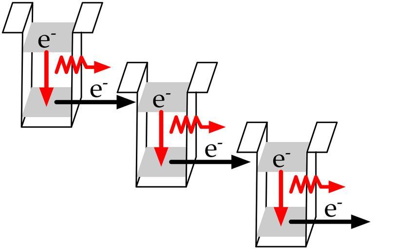 Keywords: Cascading.png Het cascade-effect De horizontale dikke zwarte pijlen duiden de tunneling aan terwijl de verticale de energieval aangeven waarbij een foton de rode pijl wordt uitgezonden Creator Yannick Clybouw nl wikipedia 2006-05-18 Yannick Clybouw wikipedia nl Yannick Clybouw original upload log page nl wikipedia Cascading png 2006-05-18 23 22 Yannick Clybouw 1122×708×8 39811 bytes <nowiki>Het cascade-effect De horizontale dikke zwarte pijlen duiden de tunneling aan terwijl de verticale de energieval aangeven waarbij een foton de rode pijl wordt uitgezonden </nowiki> Quantum cascade lasers Heterojunction band diagrams |
