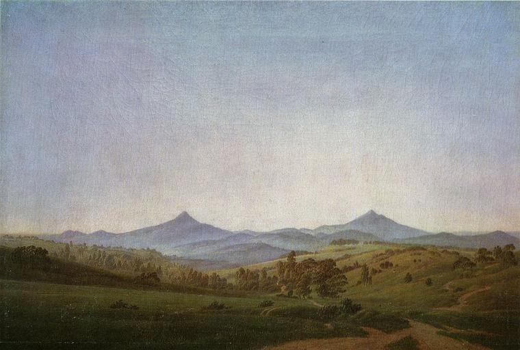 | Keywords: Caspar David Friedrich 061.jpg Artwork Creator Caspar David Friedrich Bohémský šířku s hora Milešovka Böhmische Landschaft mit dem Milleschauer Bohemian Landscape with Mount Milešovka 1809 oil canvas cm 71 104 Institution Galerie Neue Meister Dresden Dresden accession number 2197 E object history credit line de wikipedia Bargain - Original uploader was Matthäus Edinger at http //de wikipedia org de wikipedia; original text 1 http //www zeno org/Kunstwerke images/I/74n188a jpg PD-old-100 DEFAULTSORT Caspar David Friedrich Bohmische Landschaft mit dem Milleschauer 1800s paintings by Caspar David Friedrich 1809 Paintings by Caspar David Friedrich in the Galerie Neue Meister Dresden Landscape paintings of the Czech Republic Milešovka Images from zeno org |
