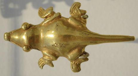 Keywords: Cast gold crocodile pendant, Panama, Honolulu Museum of Art, 305.1.JPG en Cast gold crocodile pendant Panama 11th-16th century Honolulu Museum of Art accession 305 1 own Hiart photo 2014 Pre-Columbian gold objects in the Honolulu Museum of Art Pre-Columbian metalwork of Panama Animal-shaped pendants Crocodiles in art Cc-zero |