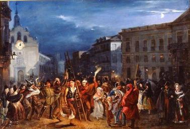 Keywords: Castelaro-noche de reyes en la puerta del sol.JPG es La noche de Reyes en la Puerta del Sol óleo sobre lienzo 67 x 97 cm Museo de Historia de Madrid 1839 http //ceres mcu es/pages/Viewer accion 41 Museo AMuseo MHM Ninv 00004 014 txt_id_imagen 1 txt_rotar 0 txt_contraste 0 txt_zoom 10 cabecera N viewName visorZoom José Castelaro PD-old-100 Uploaded with UploadWizard José Castelaro Puerta del Sol at night Events in Puerta del Sol Puerta del Sol in the 19th century |