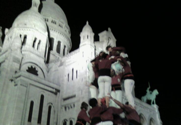 | Keywords: Castellers a Montmartre.jpg ca Els castellers d'Esparreguera muntant un castell a Montmartre a Paris França a la nit Van passar el matí fent una rua els grallers tocant i muntant pilars i castells durant dues hores al matí seguits per nombrosos fans i curiosos own Slastic 2009 Castellers d'Esparreguera Basilique du Sacré-Cœur de Montmartre at night |