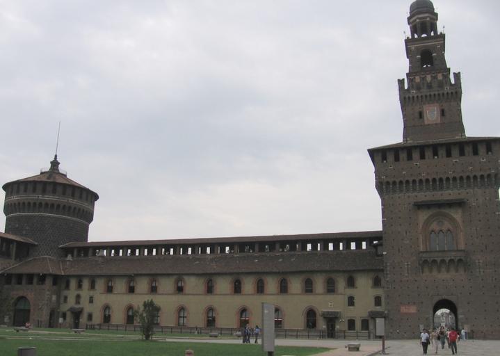 Keywords: Castello Sforzesco - central square.jpg Main court of Castello Sforzesco Milan Italy September 2005 on the left you see one of the two water towers 2005-10-09 own assumed Julo Castello Sforzesco Milan - Courtyard Water towers in Milan